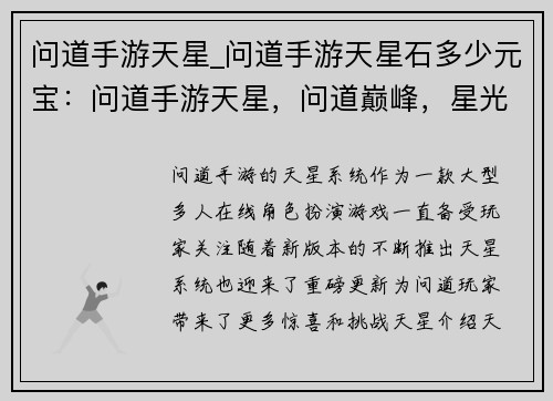 问道手游天星_问道手游天星石多少元宝:问道手游天星,问道巅峰,星光璀璨